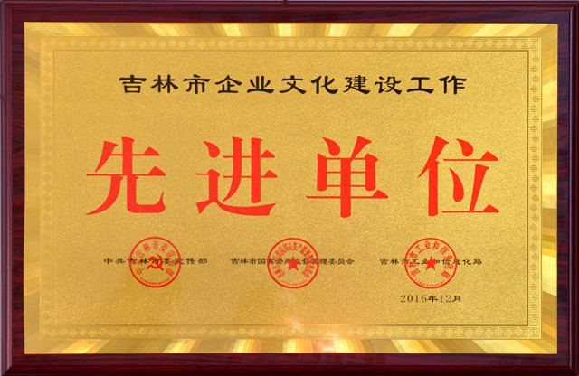 2016年12月13日,由吉林市市委宣传部、吉林市国有资产监督管理委员会、吉林市工业和信息化局联合召开全市企业文化建设现场观摩及经验交流会。我司获得企业文化建设工作先进单位称号,公司副总经理孙殿昌代表公司领奖。