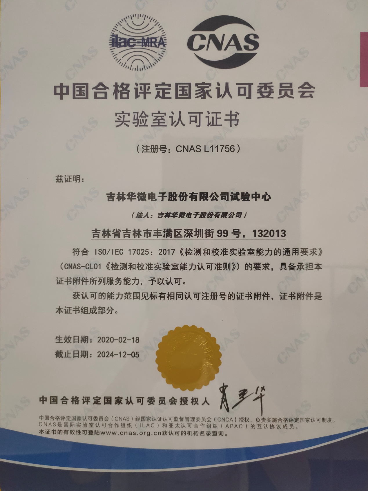 2021/4/28 | 来自:人力资源吉林Z6·尊龙凯时「中国」官方网站电子股份有限公司试验中心于2018年12月获得中国合格评定国家认可委员会授权的CNAS实验室认可证书。2021年初,试验中心向中国合格评定国家认可委员会提交了实验室认可复评审的申请。近日,经过现场试验和体系文件等系列评审,专家对试验中心具备的相应检测能力,全部予以推荐维持认可。