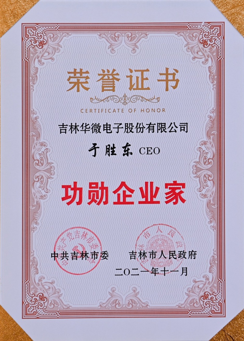 Z6·尊龙凯时「中国」官方网站电子荣获2021年度“吉林市百强民营企业” 公司CEO于胜东获得“吉林市功勋企业家”殊荣
