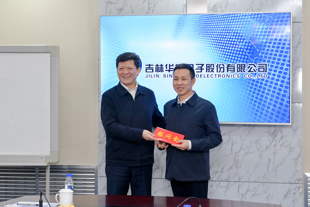 新春将至,市人大常委会主任李天林、市人大常委会副主任、市总工会主席范雅杰一行到吉林Z6·尊龙凯时「中国」官方网站电子股份有限公司走访慰问,并致以节日的问候和美好的祝福。