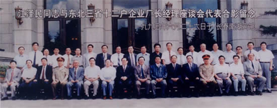 江泽民主席与东北三省十二户企业领导人合影留念(右上七为夏增文董事长)