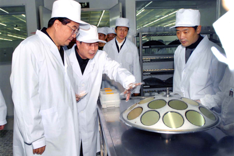 全国人大常委会副委员长兼秘书长(时任国家经贸委主任)盛华仁到公司视察(右一为夏增文董事长)
